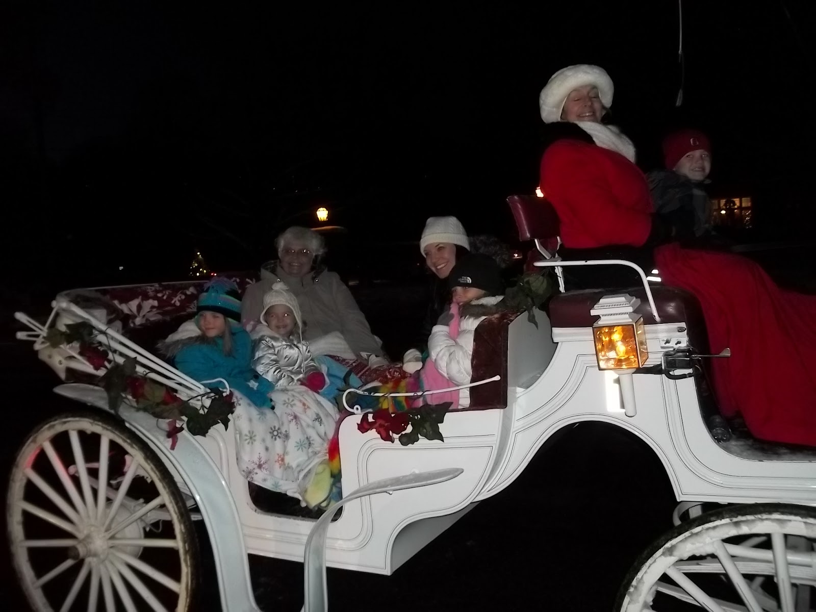 What goes well with snow.......let's see.......a magical carriage ride, a child's birthday. ice cream cake and grandkids. It doesn't get better than this. One family is missing but not in spirit. We will treasure these memories forever. One granddaughter made up a sweet song about the real meaning of Christmas. The words were something like,"It's not about the presents, it's about the family." Ahhhhhh, how sweet it is.